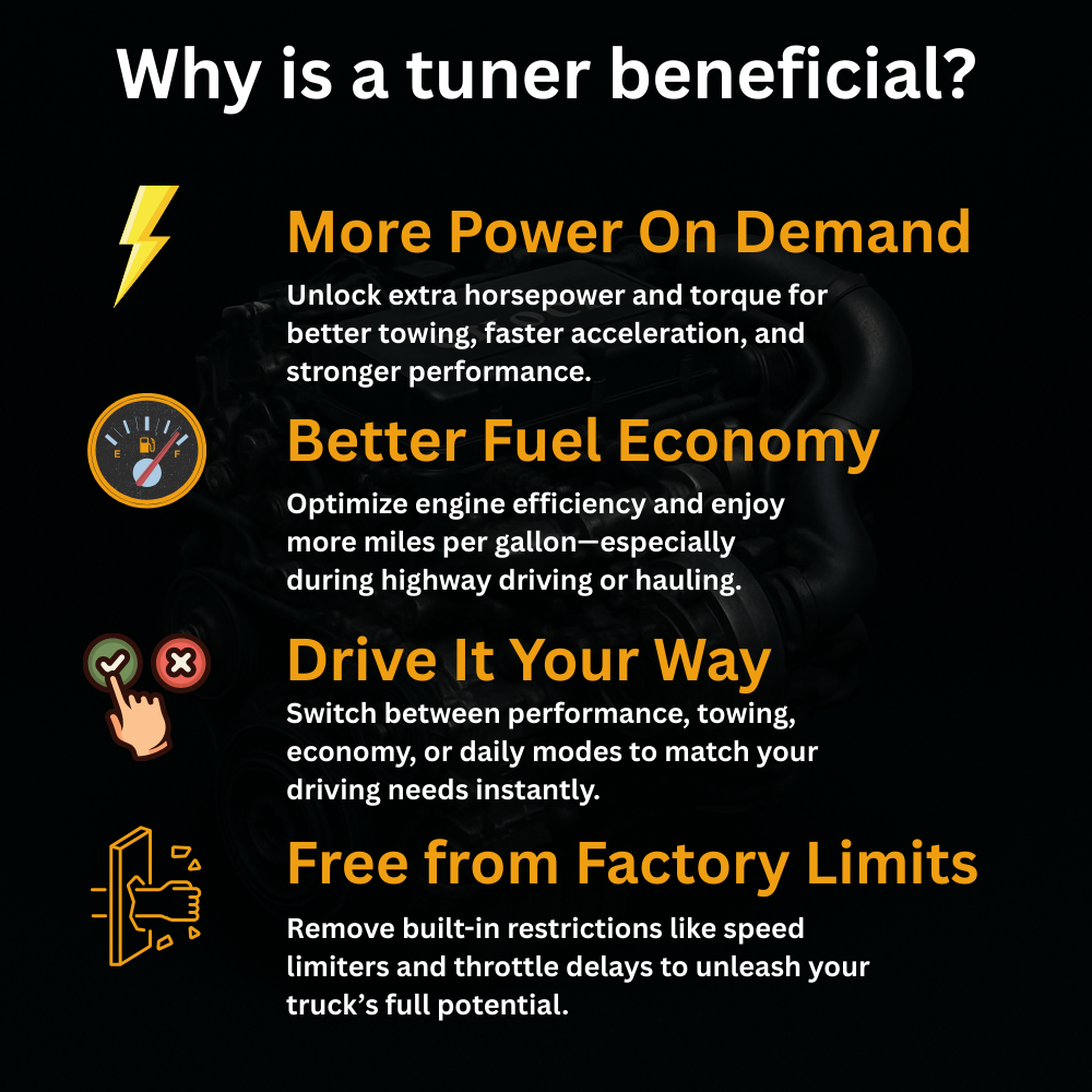 Quite the opposite. In fact, many customers report improved engine life, smoother shifting, and better fuel economy (typically 3-5 MPG gains) when using a quality delete tuner.