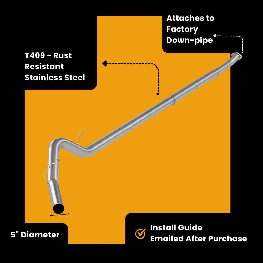 Our kit includes a DPF/CAT delete pipe that bolts in place of the original DPF and CAT in the exhaust system.