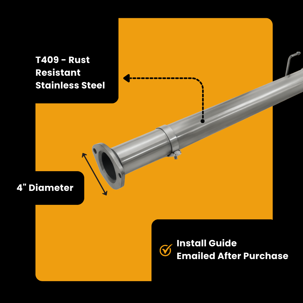 2) 4” Rust Resistant DPF & CAT Delete Pipe