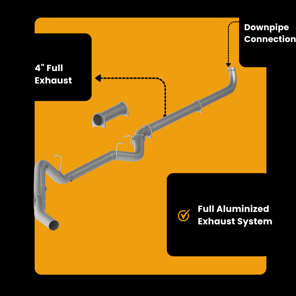 Our kit includes a full exhaust system that replaces your factory exhaust, as well as the DPF/CAT.