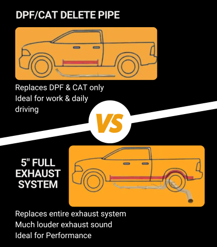 Deleting the DPF will make the exhaust louder. You’ll hear more turbo spool, engine tone, and exhaust note, especially with a straight pipe. We offer optional mufflers for those who want a quieter ride.