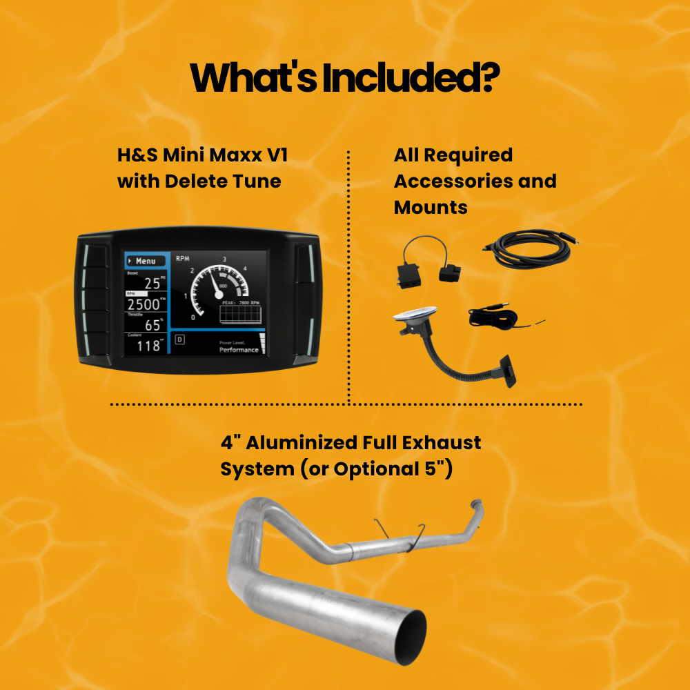 A Full Delete Kit removes all emissions components that commonly fail—DPF (Diesel Particulate Filter), EGR (Exhaust Gas Recirculation), and DEF (Diesel Exhaust Fluid) systems. Our kits include the tuner, delete pipes, and any required sensors or block-off plates—customized for your truck’s make, model, and year.