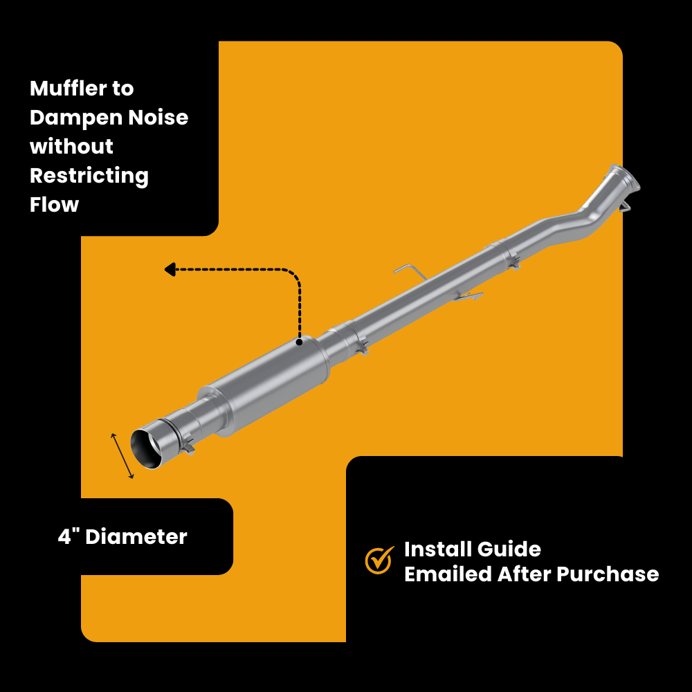 Deleting the DPF will make the exhaust louder. You’ll hear more turbo spool, engine tone, and exhaust note, especially with a straight pipe. We offer optional mufflers for those who want a quieter ride.